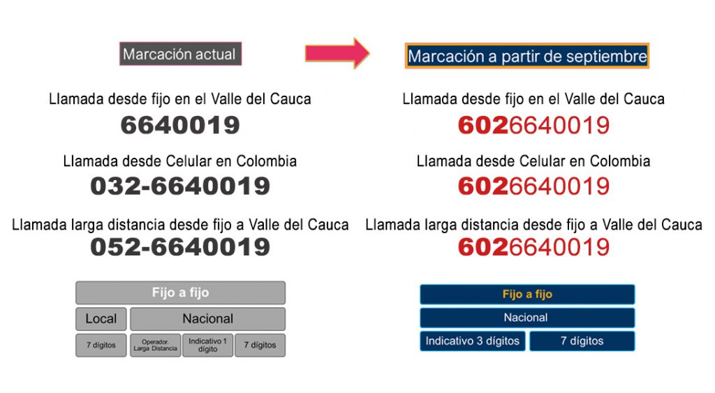 Desde el 1 de septiembre de 2021, se implementará la marcación única nacional en Colombia, para unificar la longitud de los números telefónicos fijos y móviles a 10 dígitos, simplificando el acceso a los servicios e impulsando la transformación y modernización de las redes fijas.